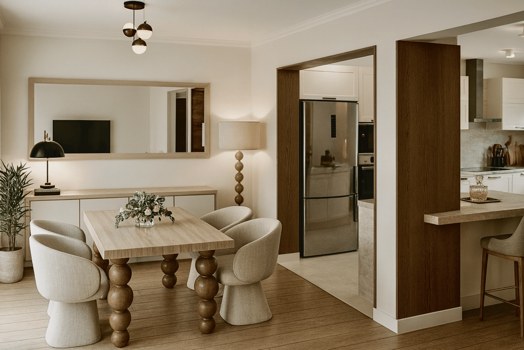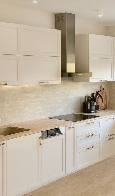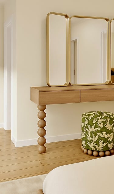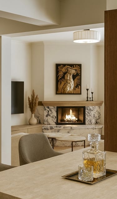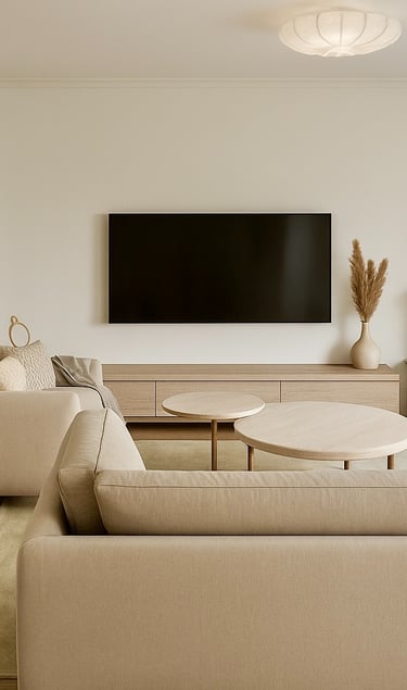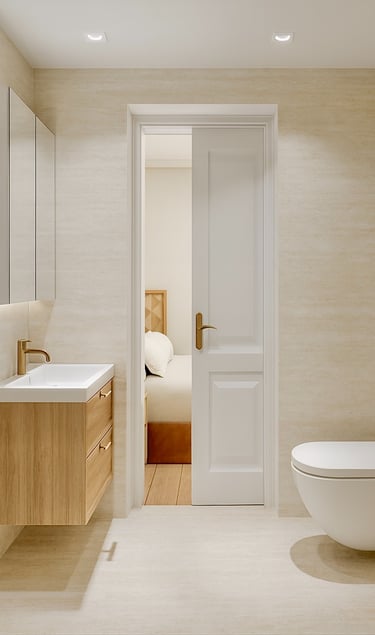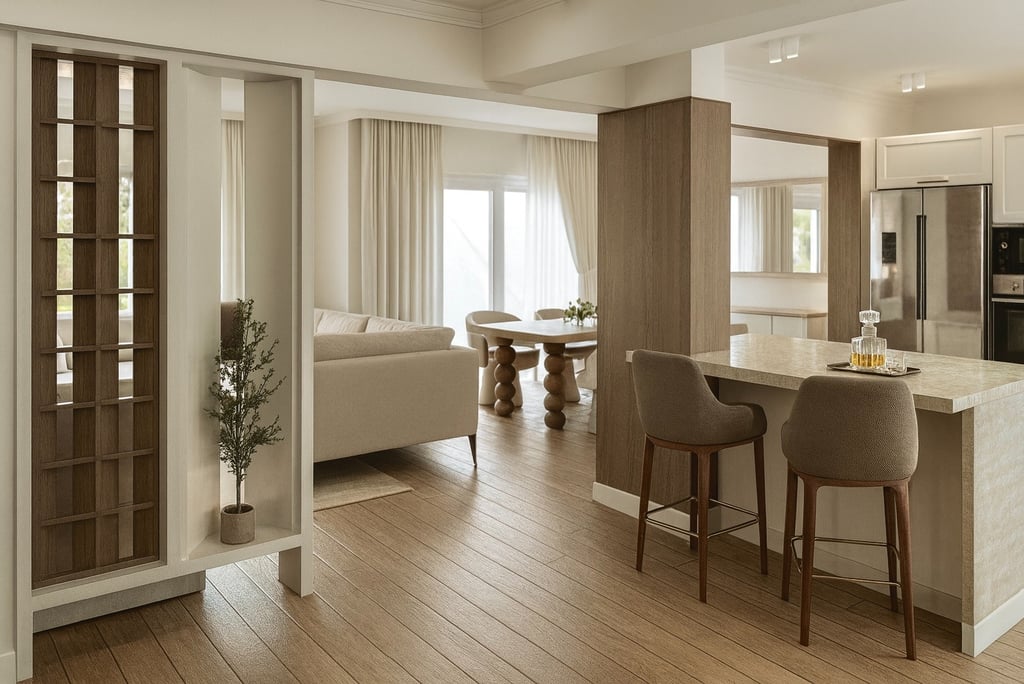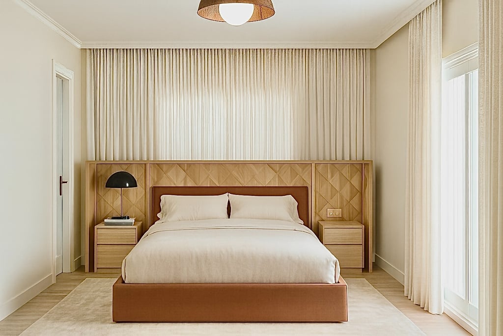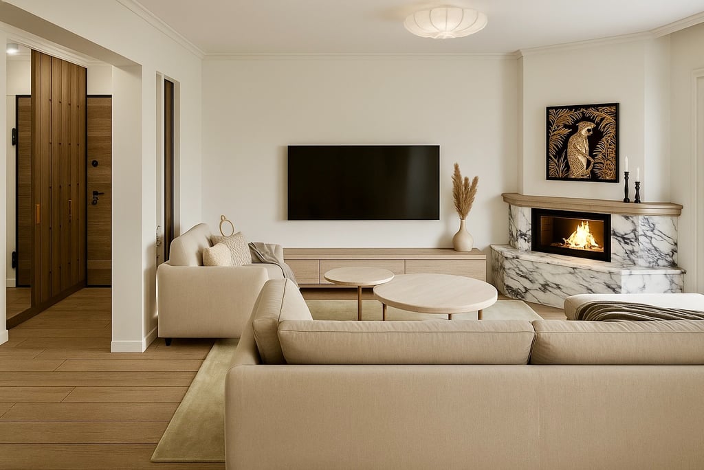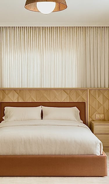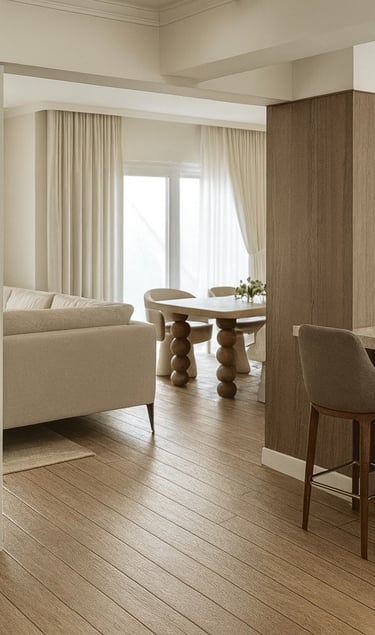 Projede, doğal malzeme kullanımı ve sıcak tonların birlikteliğiyle dingin ve zarif bir atmosfer hedefledik. Meşe dokular, bej ve krem tonlarıyla buluşarak iç mekandan süreklilik ve bütünlük sağladık. Tasarımın ana omurgasını yalın çizgiler, doğal ışık kullanımı ve dengeli bir malzeme paletiyle oluşturduk.