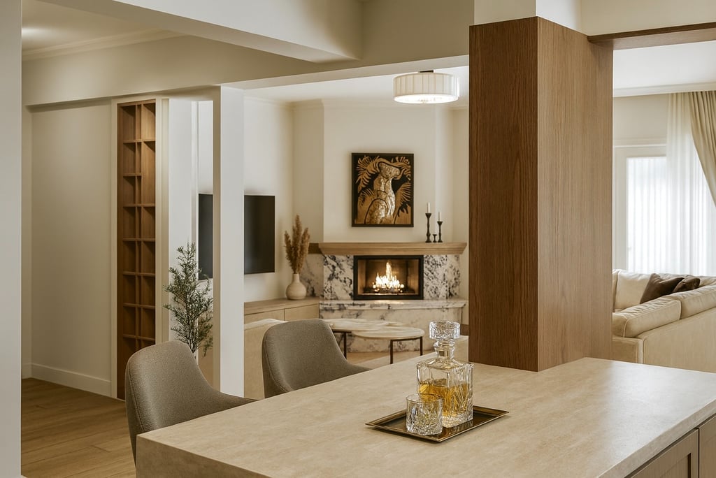 Kuşadası'nda bulunan bu projemiz, mevcut bir konutun modern yaşam alışkanlıklarına uygun olarak yeniden ele alınmasıyla şekillendi. Evin mevcut mimari kabuğu korunarak, işlevsel ve estetik değerleri arttıran bir iç mekan dönüşümü gerçekleştirdik.