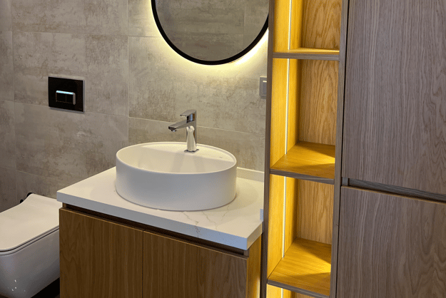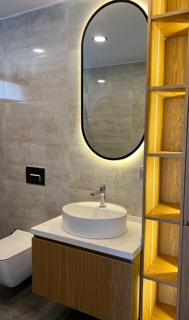 Bodrum'daki bu projemiz, Airbnb kiralama amacı ile kullanılan bir villanın banyo alanlarının güncellemesi ve misafir deneyimini iyileştirmeyi hedefleyen kapsamlı bir tadilat sürecini kapsıyor. Proje yaklaşımımız, işlevselliği, estetiği ve kolay bakım sağlanabilirliği bir arada sunan sıcak bir tasarım diline odaklandık.