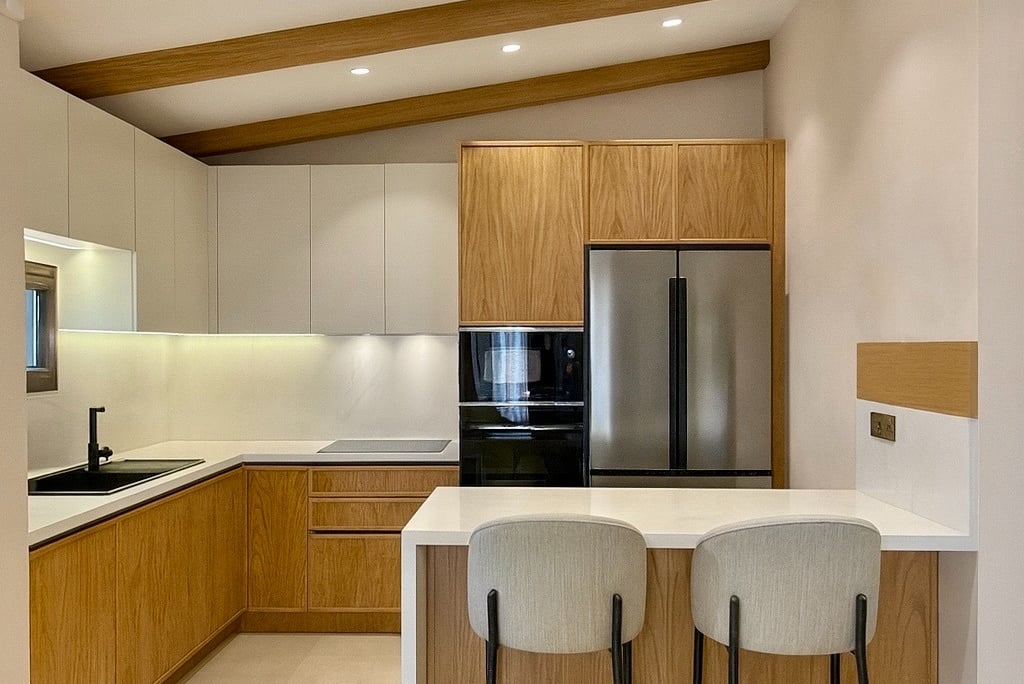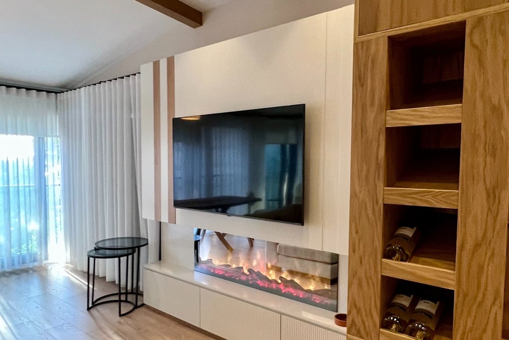 Bu anahtar teslim projemiz, tasarım ve uygulama süreçlerinin titizlikle yürütüldüğü, bütünsel bir dönüşümün sonucudur. Doğal malzeme kullanımı, dengeli renk paleti ve ince işçilik detaylarıyla villayı, modern ve davetkar bir yaşam alanına çevirdik.