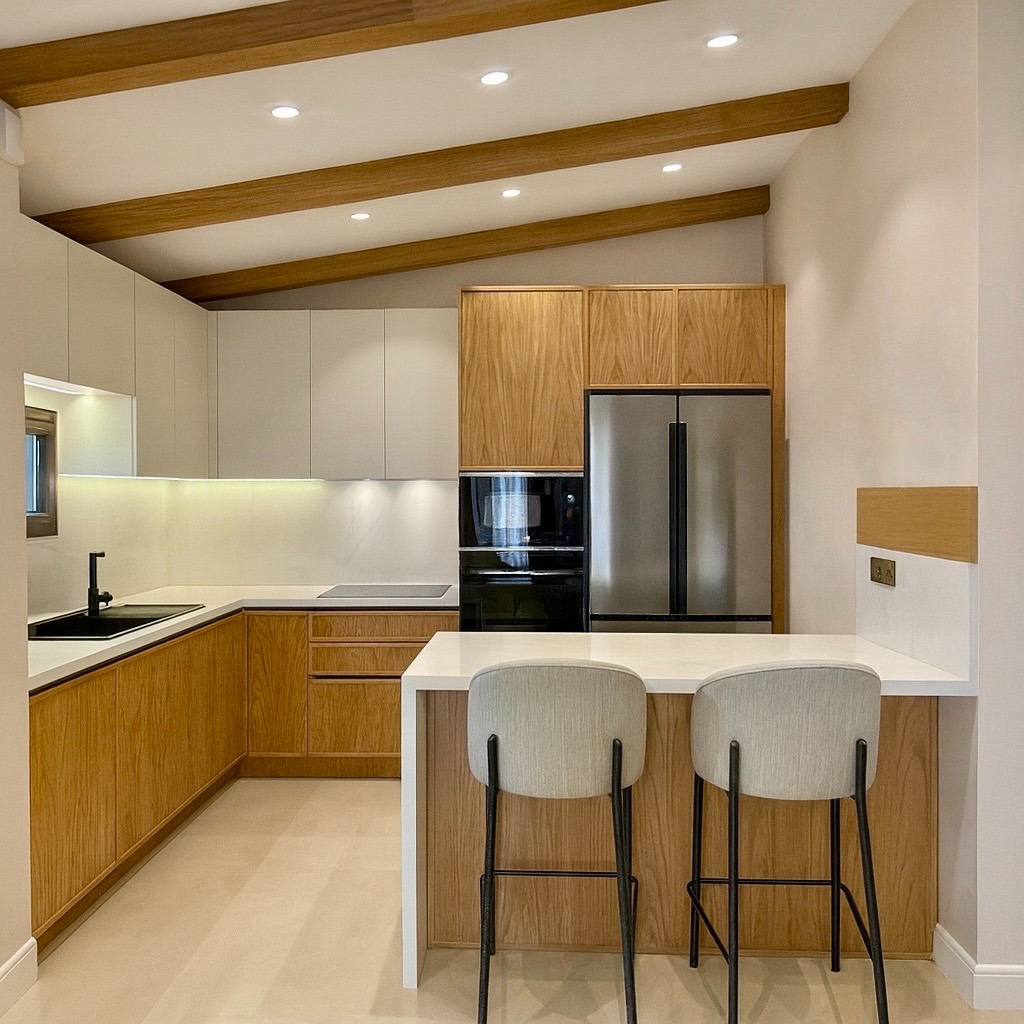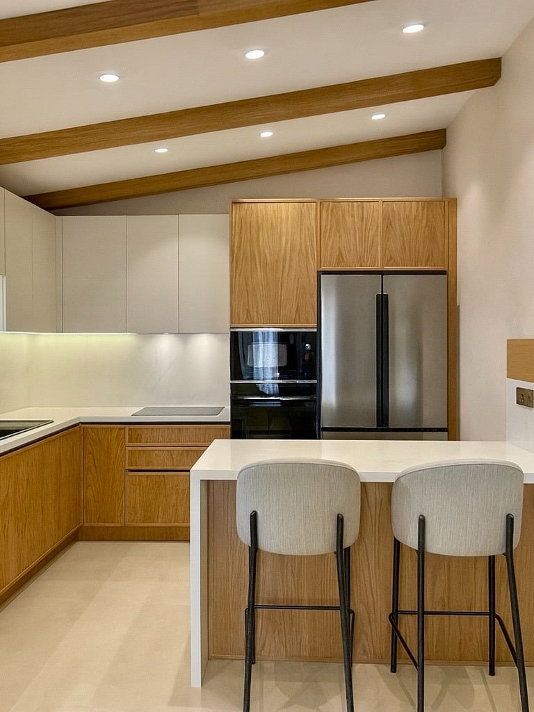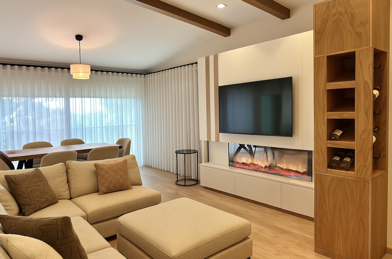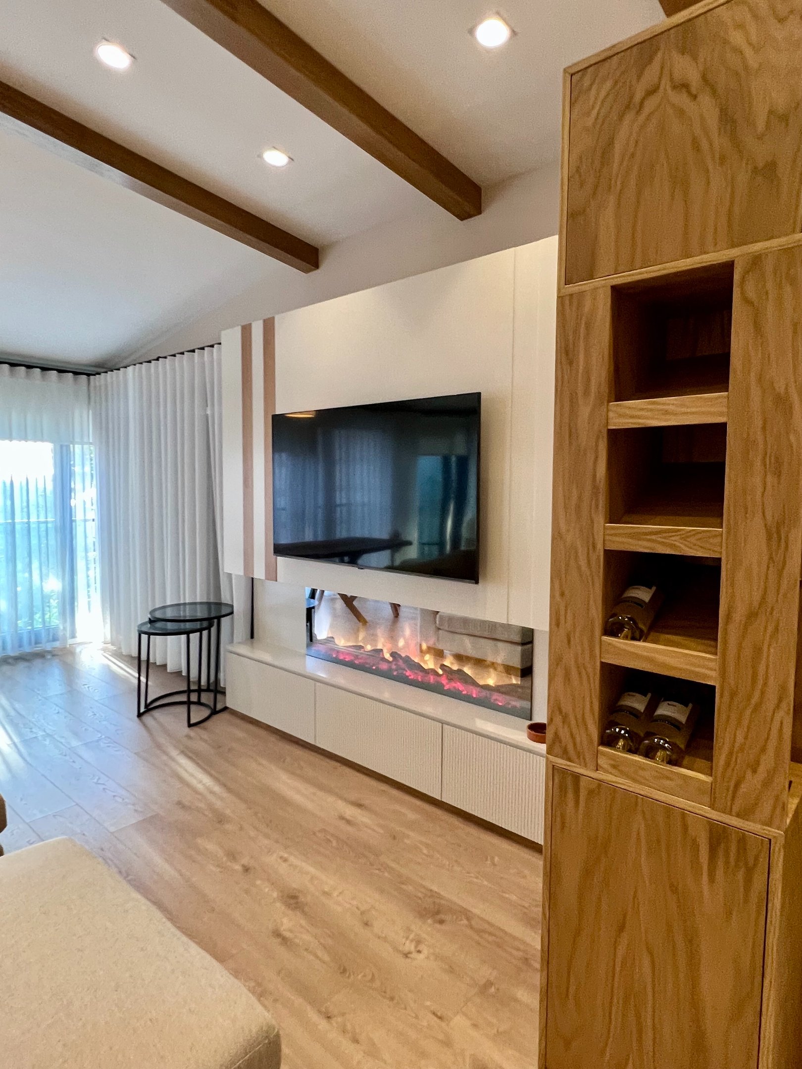 Bu anahtar teslim projemiz, tasarım ve uygulama süreçlerinin titizlikle yürütüldüğü, bütünsel bir dönüşümün sonucudur. Doğal malzeme kullanımı, dengeli renk paleti ve ince işçilik detaylarıyla villayı, modern ve davetkar bir yaşam alanına çevirdik.